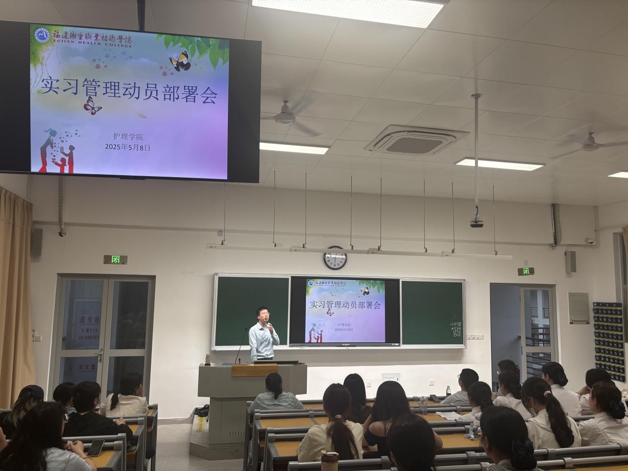 為加強(qiáng)學(xué)生實(shí)習(xí)業(yè)務(wù)指導(dǎo)和日常教育管理工作,幫助學(xué)生順利完成實(shí)習(xí)任務(wù),5月8日晚,護(hù)理學(xué)院在學(xué)院第五階梯教室召開2023級(jí)護(hù)理、助產(chǎn)專業(yè)學(xué)生實(shí)習(xí)動(dòng)員部署會(huì)。護(hù)理學(xué)院黨委書記林穎峰、副書記林來元、副院長(zhǎng)林浩、2023級(jí)輔導(dǎo)員、各實(shí)習(xí)單位隊(duì)長(zhǎng)及副隊(duì)長(zhǎng)、省外自主實(shí)習(xí)學(xué)生共150余人參加了此次會(huì)議。