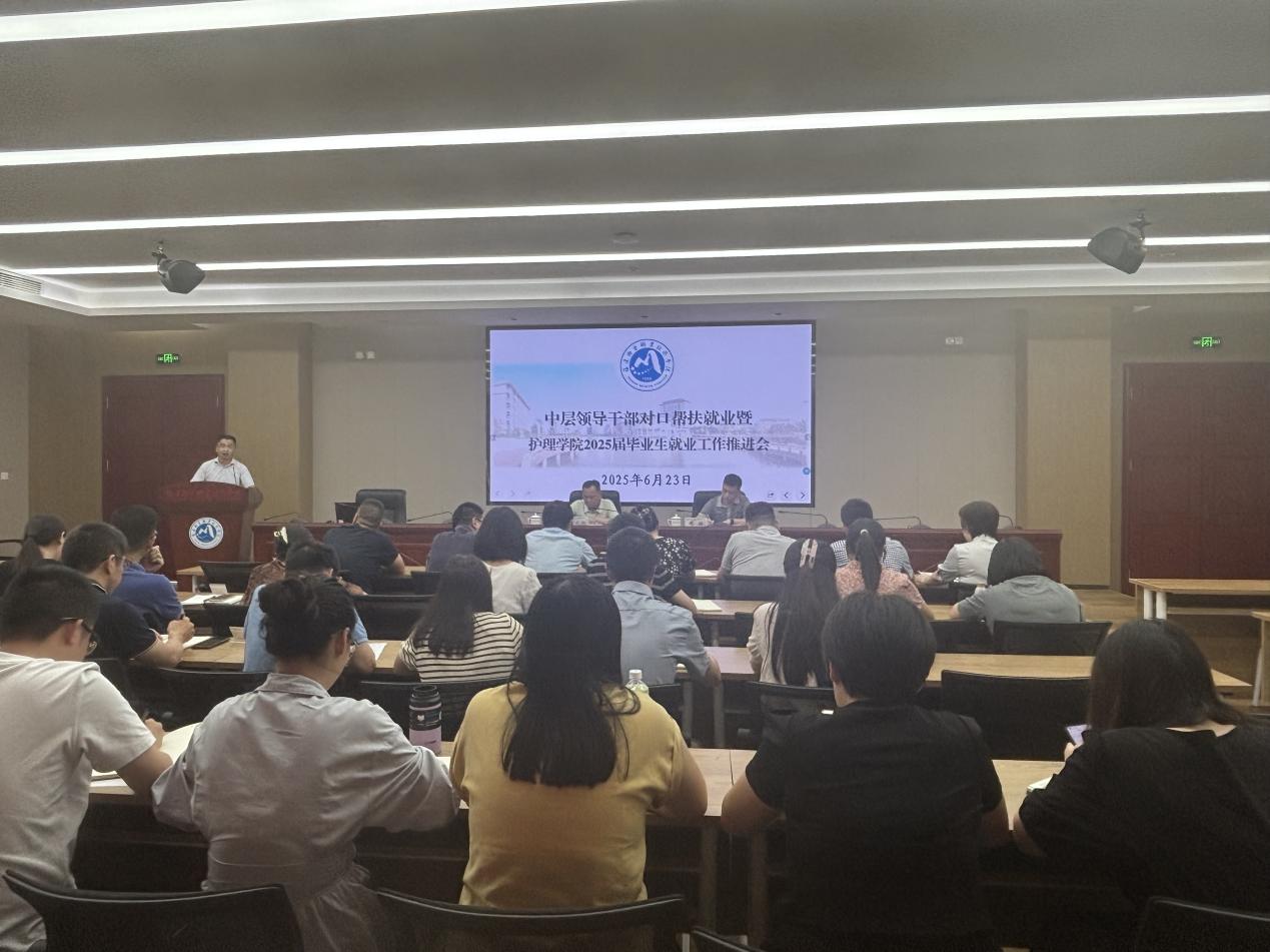 為緊抓畢業(yè)生離校前就業(yè)窗口期,全力推動(dòng)2025屆畢業(yè)生高質(zhì)量充分就業(yè),6月23日,護(hù)理學(xué)院召開(kāi)2025屆畢業(yè)生就業(yè)推進(jìn)會(huì),全面部署沖刺階段任務(wù)。校黨委書(shū)記曾武祈、副校長(zhǎng)周雄出席會(huì)議,對(duì)口幫扶行政處室、學(xué)院班子成員及畢業(yè)班輔導(dǎo)員參會(huì)。