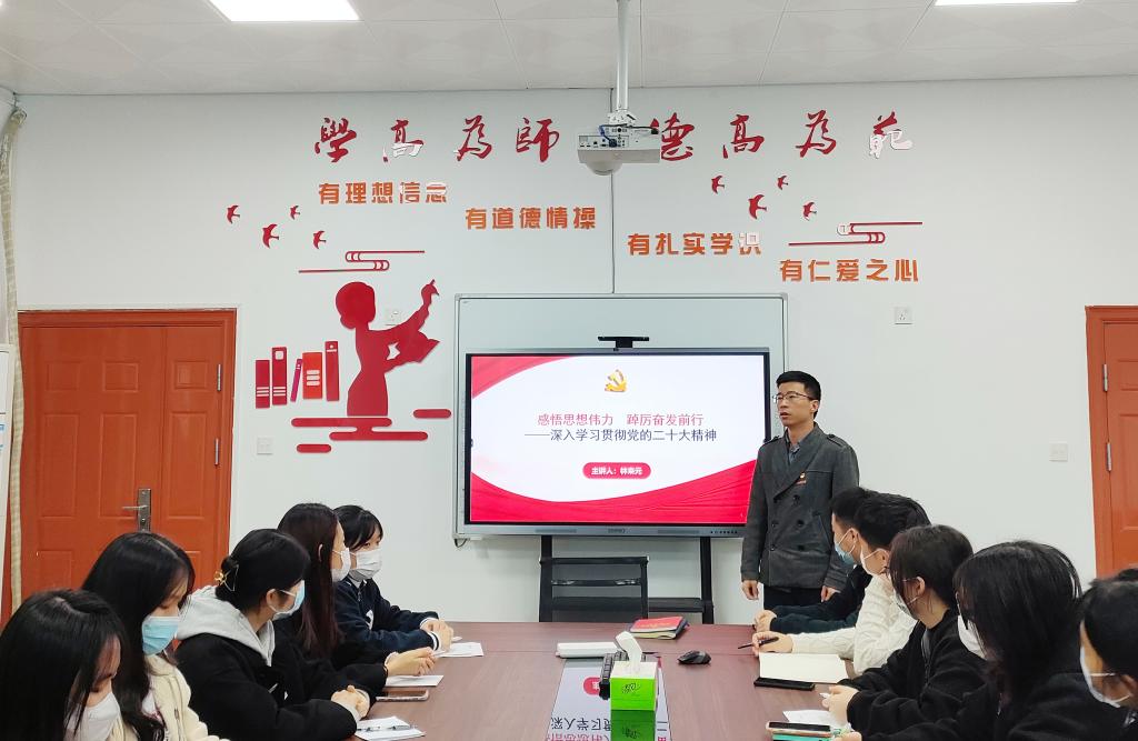 為深入學習宣傳貫徹黨的二十大精神,引導學生干部學思悟踐黨的二十大精神,推動黨的二十大精神見行見效,激發(fā)廣大青年愛黨愛國情懷。2022年12月7日,護理學院林來元副書記在系部樓301會議室開展以“感悟思想偉力,踔厲奮發(fā)前行”為主題的專題黨課。參加此次專題黨課的有護理學院團總支書記林飛準、團總支副書記張龍以及學生會學生干部們。