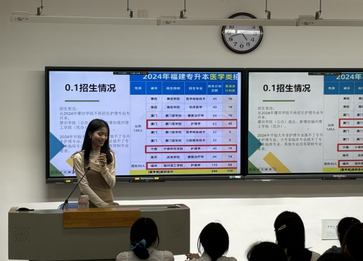此次講座特別邀請了來自2021級的兩位優(yōu)秀學(xué)姐——蔡嘉銘和許佳鳳,她們分別以跨專業(yè)升本和護理專業(yè)升本的成功經(jīng)歷,為在場的學(xué)弟學(xué)妹們帶來了生動而實用的分享。