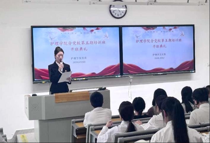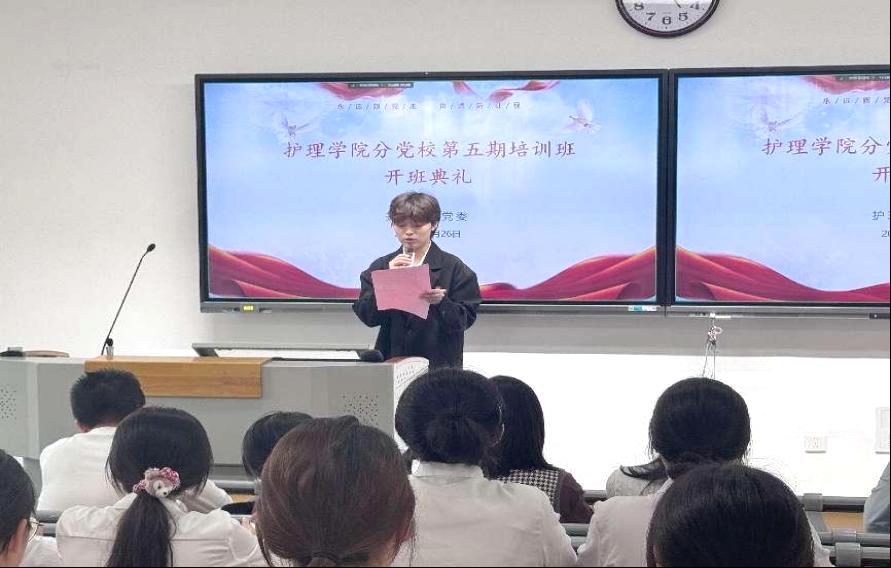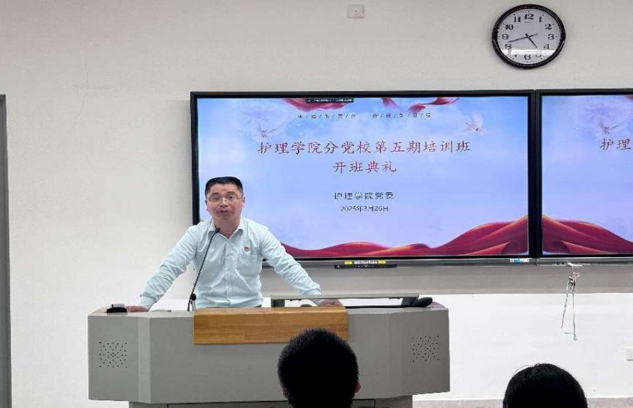 為深入學(xué)習(xí)貫徹習(xí)近平新時(shí)代中國(guó)特色社會(huì)主義思想,切實(shí)加強(qiáng)入黨積極分子的教育培養(yǎng)。2025年3月27日,護(hù)理學(xué)院分黨校第五期入黨積極分子培訓(xùn)班開班典禮在護(hù)理學(xué)院第五階梯教室隆重舉行。黨委領(lǐng)導(dǎo)班子、黨支部書記、團(tuán)總支指導(dǎo)老師與60名入黨積極分子出席開班典禮。