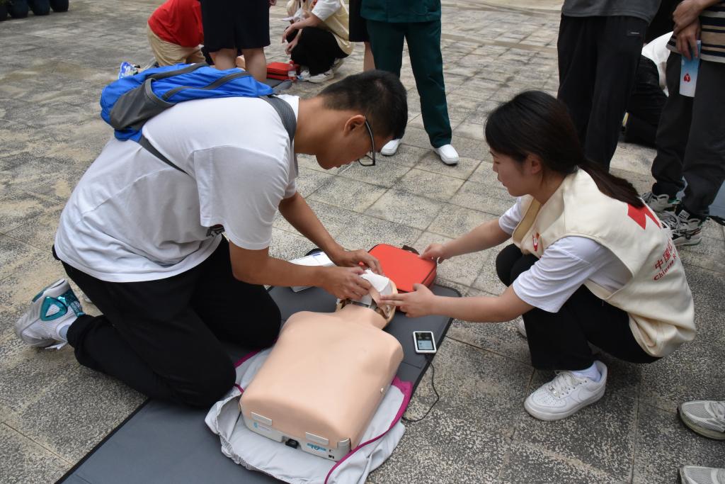 培訓尾聲,為檢驗學習培訓成果,進行了心肺復蘇術現場考核,開展技能考核比拼,指導幫助操作中存在的不足,并親身示范正確、規(guī)范的動作要領。