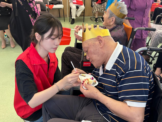 隨后,活動(dòng)進(jìn)入了溫馨感人的慶生環(huán)節(jié)。在歡快的生日歌聲中,幾位即將迎來生日的爺爺奶奶被請(qǐng)上臺(tái),院長親自推著精心準(zhǔn)備的生日蛋糕緩緩步入舞臺(tái)中央。在大家的祝福聲中,爺爺奶奶們?cè)S下心愿,幸福地吹滅了蠟燭。志愿者與老師細(xì)心地將蛋糕分發(fā)給每一位老人,甜蜜的滋味在舌尖綻放,更在心頭蕩漾。