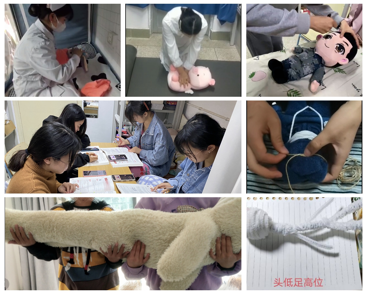 教學(xué)相長(zhǎng),老師們的傾囊相授,換來(lái)的是同學(xué)們的積極配合。雖然是在宿舍上課,同學(xué)們依然穿戴整齊,端坐桌前,保持著課堂的儀式感。護(hù)理專(zhuān)業(yè)課技能操作多,宿舍的條件雖然比不上實(shí)訓(xùn)室,但辦法總比困難多,同學(xué)們開(kāi)動(dòng)腦筋,就地取材,娃娃、枕頭變身模擬人,搬運(yùn)患者、心肺復(fù)蘇、嬰兒撫觸……只要有心,沒(méi)有什么能阻擋他們學(xué)習(xí)的熱情。