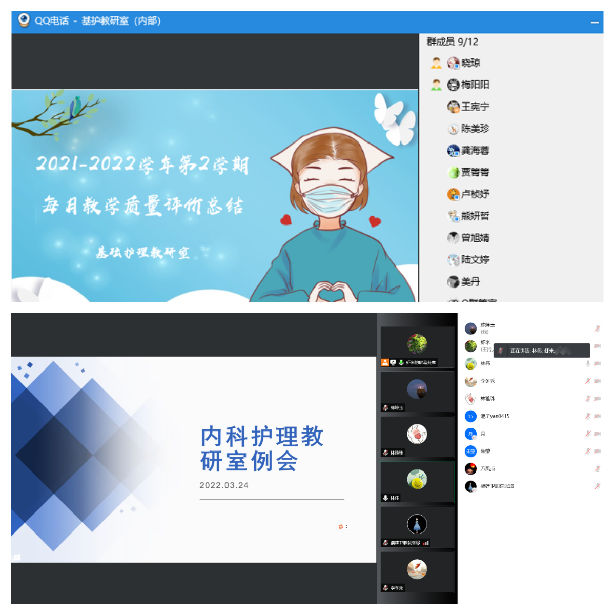 各個(gè)教研室開(kāi)展“線上集體備課”,針對(duì)線上教學(xué)的特點(diǎn),分析教學(xué)內(nèi)容、探討教學(xué)方法、分享教學(xué)經(jīng)驗(yàn),保證教學(xué)同質(zhì)化。