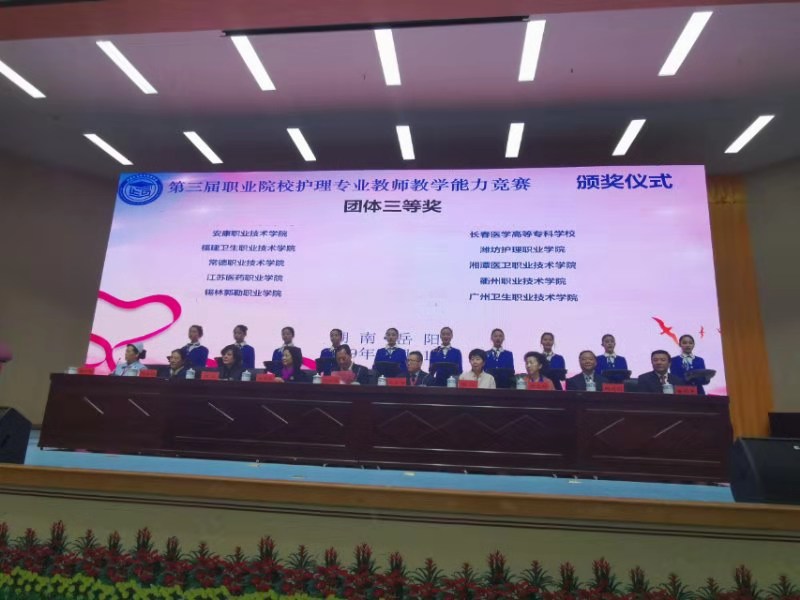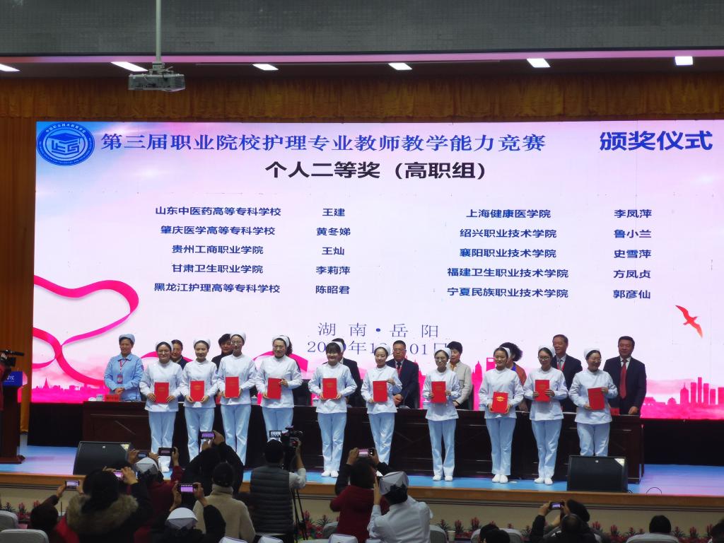 2019年11月27日至12月1日,全國職業(yè)院校護(hù)理專業(yè)教師教學(xué)能力大賽在岳陽職業(yè)技術(shù)學(xué)院舉行。護(hù)理系方鳳貞和楊燕清老師榮獲團(tuán)體三等獎(jiǎng),方鳳貞老師榮獲個(gè)人二等獎(jiǎng)。