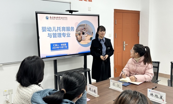 托育專業(yè)帶頭人林旭星介紹了托育專業(yè)的發(fā)展情況,并對(duì)人才培養(yǎng)方案修訂情況進(jìn)行說明。