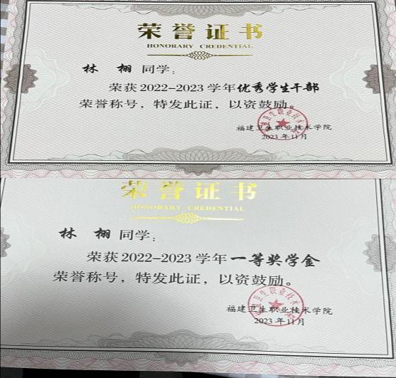 2022-2023學(xué)年獲校優(yōu)秀學(xué)生干部;