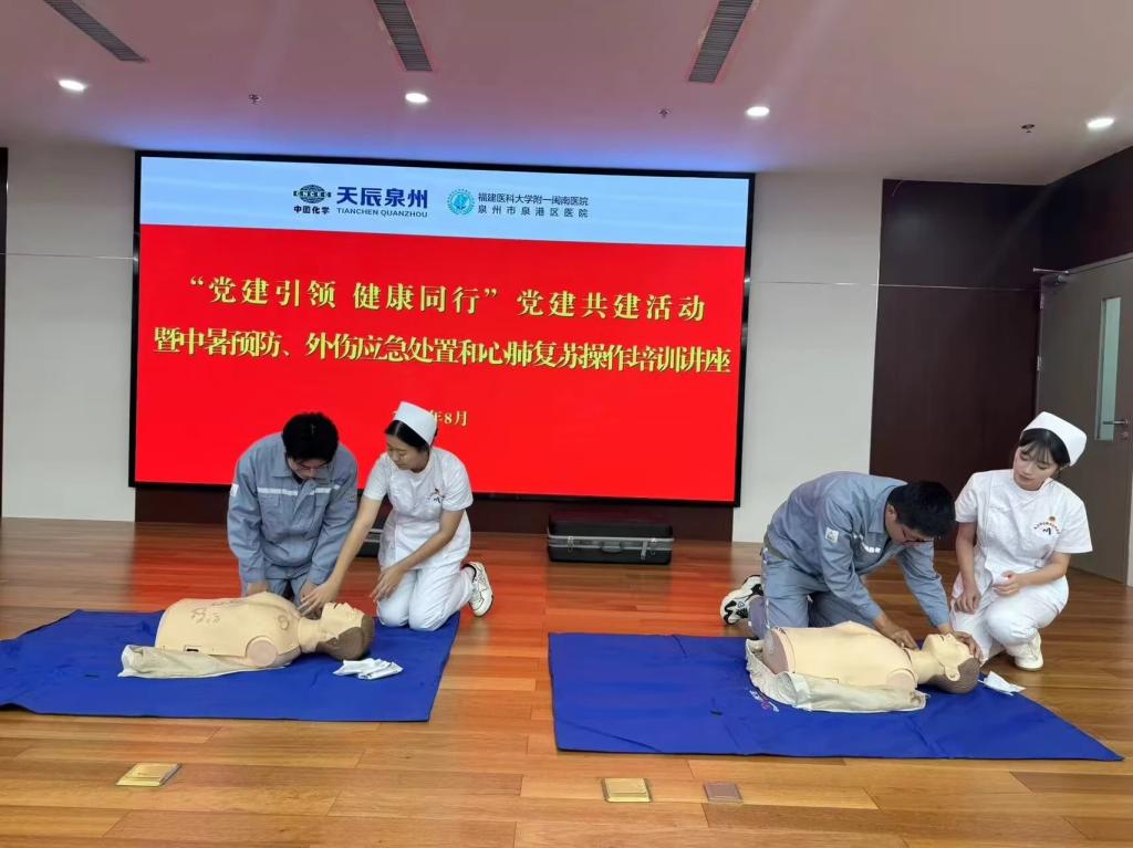 在中化學天辰(泉州)新材料有限公司的職工也參與了我們的活動,我們?yōu)槠溟_展了醫(yī)學知識宣教與CPR的演示與教學活動。通過這些活動,職工們不僅學到了寶貴的急救知識,也增強了應對緊急情況的能力。
