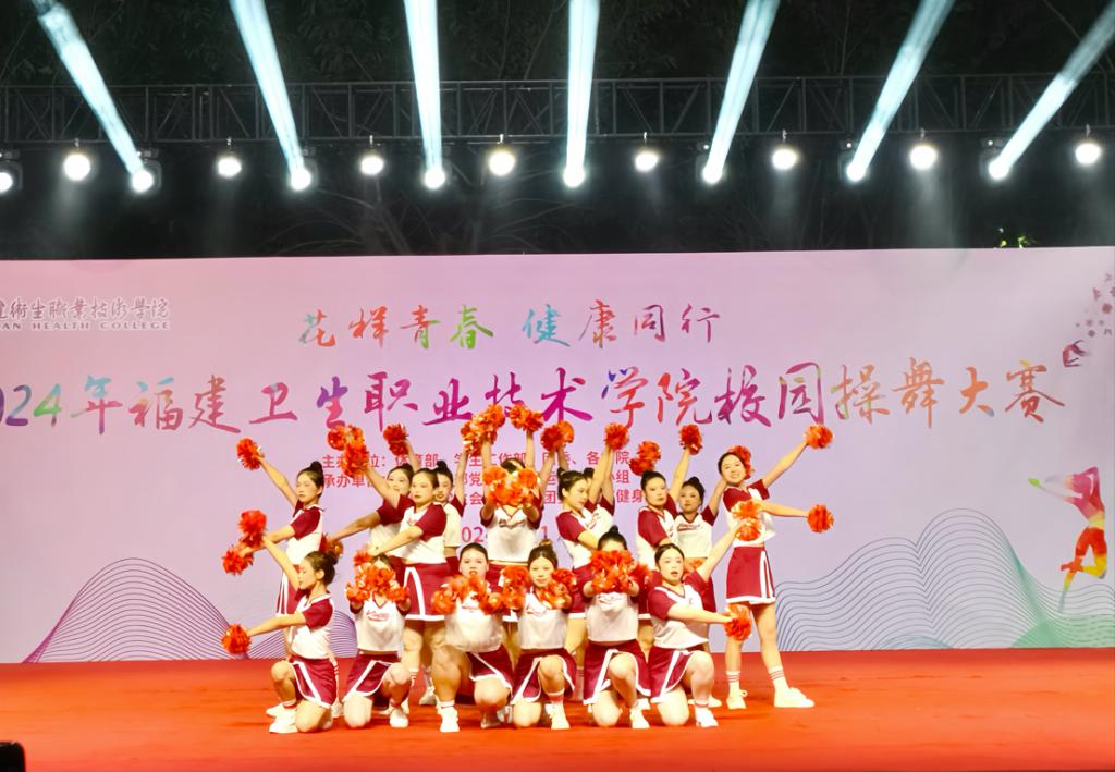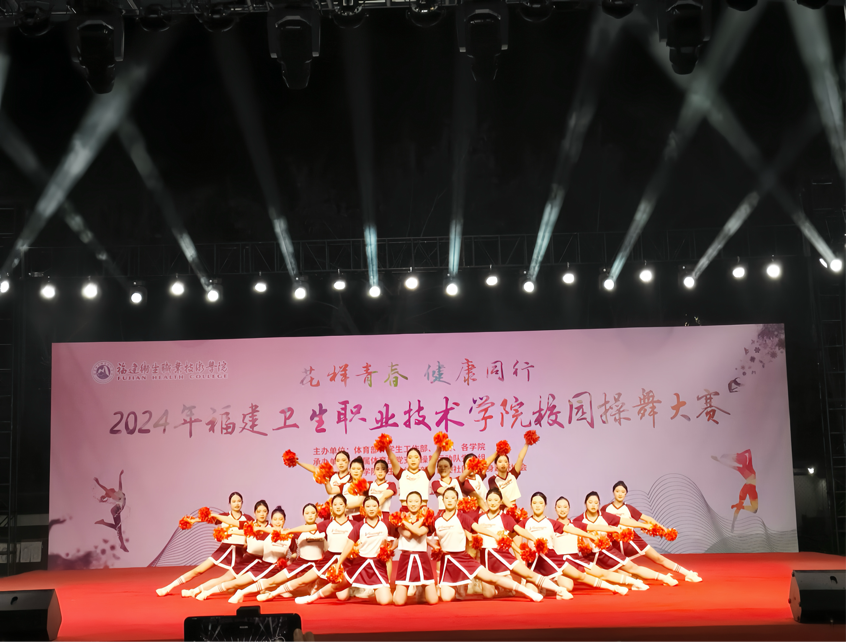 賽場上,啦啦操隊(duì)員們揮動(dòng)著花球,激情四射。