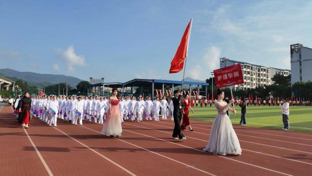 護(hù)理學(xué)院的方陣以整齊劃一的步伐入場,