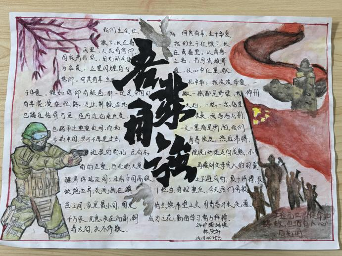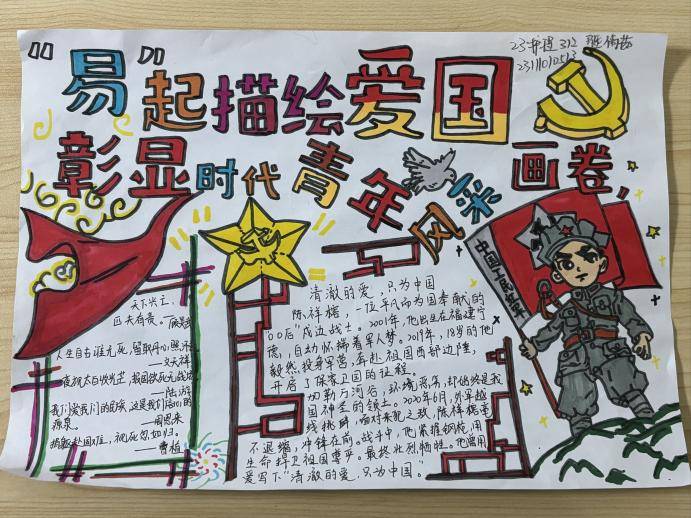 此次“‘易’起描繪愛(ài)國(guó)畫卷,彰顯時(shí)代青年風(fēng)采”活動(dòng),為同學(xué)們提供了一個(gè)展示自我、鍛煉能力的平臺(tái)。繪畫過(guò)程中,展現(xiàn)了同學(xué)們出色的藝術(shù)才華,更彰顯了新時(shí)代青年積極向上、熱愛(ài)祖國(guó)的精神風(fēng)貌。這些手抄報(bào)不僅是藝術(shù)作品,更是以直觀的方式向同學(xué)們傳播著愛(ài)國(guó)主義精神,激勵(lì)著更多青年以實(shí)際行動(dòng)踐行愛(ài)國(guó)之志,讓愛(ài)國(guó)情懷在新時(shí)代綻放出更加絢爛的光彩。
