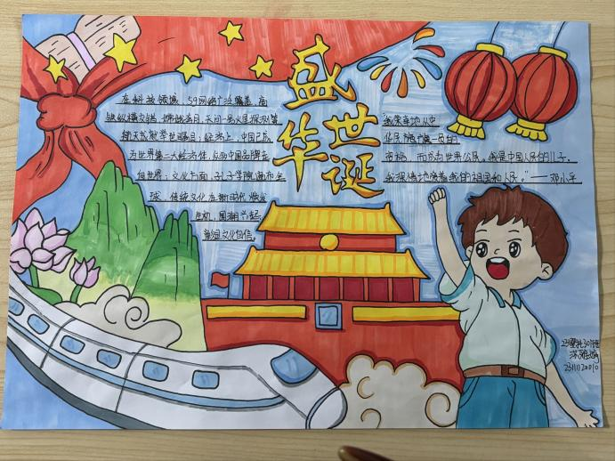 在活動(dòng)中,同學(xué)們用畫筆勾勒出心中的祖國(guó),用文字書(shū)寫著對(duì)祖國(guó)的熱愛(ài)和祝福。