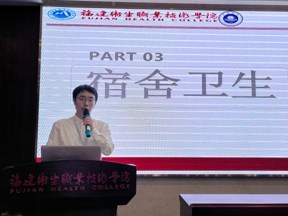 動(dòng)員會(huì)上樂靜顏同學(xué)針對(duì)宿舍安全用電、個(gè)人財(cái)務(wù)和宿舍紀(jì)律方面做出了解讀和要求,林晟同學(xué)解讀了宿舍衛(wèi)生的扣分細(xì)則以及介紹了護(hù)理學(xué)院六大主題宿舍的評(píng)選細(xì)則和評(píng)選時(shí)間。