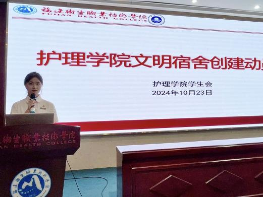 進(jìn)一步增強(qiáng)學(xué)生安全意識(shí),促進(jìn)學(xué)生文明行為養(yǎng)成,推進(jìn)“一站式”學(xué)生社區(qū)創(chuàng)建工作,營(yíng)造整潔衛(wèi)生、文明有序、安全和諧的宿舍文明。10月23日,護(hù)理學(xué)院召開“文明宿舍創(chuàng)建動(dòng)員會(huì)”,會(huì)議到場(chǎng)的老師有護(hù)理學(xué)院黨委副書記林來(lái)元、護(hù)理學(xué)院團(tuán)總支副書記陳梅欽、護(hù)理學(xué)院學(xué)生會(huì)工作人員及護(hù)理學(xué)院全體宿舍長(zhǎng)參會(huì)。會(huì)議由護(hù)理學(xué)院沈欣潔同學(xué)主持。