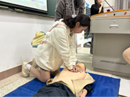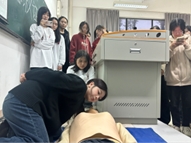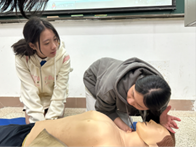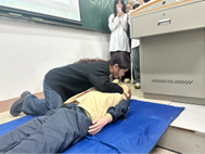 心肺復(fù)蘇(CPR)這一環(huán)節(jié)更是重中之重。紅十字會成員們先以通俗易懂的話術(shù)拆解操作流程:判斷意識、胸外按壓、開放氣道、人工呼吸,每個動作的力度、頻率都嚴(yán)苛講究。為讓同學(xué)們親身體驗,模擬假人與急救設(shè)備齊齊上陣。同學(xué)們初次上手略顯緊張,按壓深度不足、吹氣節(jié)奏紊亂,成員們便一對一指導(dǎo),耐心地手把手糾正,直到操作規(guī)范為止。