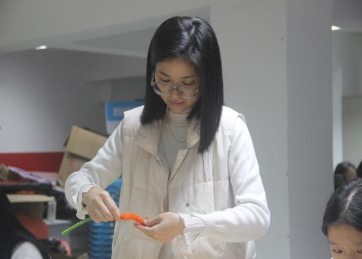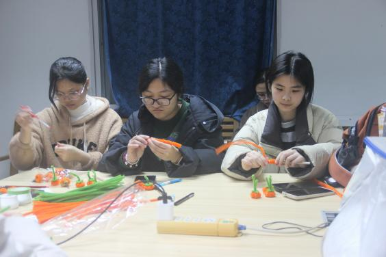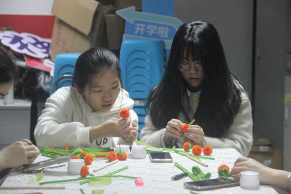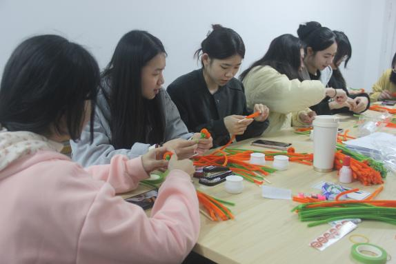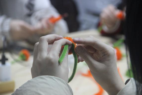 同學(xué)們運用扭扭棒、熱熔膠、剪刀等工具,看似簡單的一顆顆小柿子,大家都做的都萬分認(rèn)真。同學(xué)們輕輕地把扭扭棒卷上,再各種的穿插,過程中大家都小心翼翼,只為把手中的作品做的最美、最好!