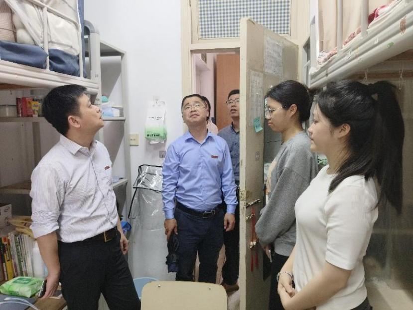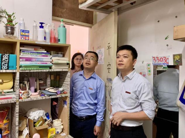 在走訪過程中,副校長周雄與同學們親切交談,細致詢問日常起居、學業(yè)進展及未來規(guī)劃。他強調(diào),學校高度重視“一站式”學生社區(qū)建設(shè),將在暑期優(yōu)先升級改善部分學生宿舍生活設(shè)施,努力為學生提供更好的學習生活環(huán)境。同時,他要求,護理學院要以“一站式”學生社區(qū)建設(shè)為契機,進一步完善主題宿舍創(chuàng)建機制,暢通學生意見反饋機制,把社區(qū)服務(wù)做實做細。