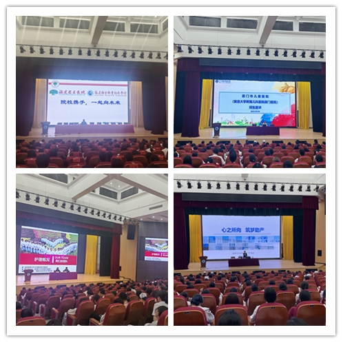 為深入學(xué)習(xí)貫徹黨的二十大精神,推進(jìn)產(chǎn)教融合、科教融匯,深化校院合作、醫(yī)教協(xié)同人才培養(yǎng)模式,4月12日-5月5日,護(hù)理學(xué)院聯(lián)合福建省腫瘤醫(yī)院、福建省婦幼保健院、福建省立醫(yī)院及廈門兒童醫(yī)院在學(xué)術(shù)報告廳舉辦了4場校院合作班宣講會。福建省腫瘤醫(yī)院護(hù)理部副主任柯熹、副主任護(hù)師林慧,福建省婦幼保健院護(hù)理部副主任郭勝斌、護(hù)理部督導(dǎo)劉晨音,福建省立醫(yī)院護(hù)理部負(fù)責(zé)人金爽,廈門兒童醫(yī)院護(hù)理部負(fù)責(zé)人葉茹明、科教科老師朱赟及新生兒科護(hù)士、廈門兒童醫(yī)院首屆校院合作班學(xué)生、護(hù)理學(xué)院2021屆校友盧珊珊,護(hù)理學(xué)院黨政領(lǐng)導(dǎo)班子、學(xué)院辦公室相關(guān)負(fù)責(zé)人、2022級輔導(dǎo)員以及2022級全體學(xué)生參加宣講會。