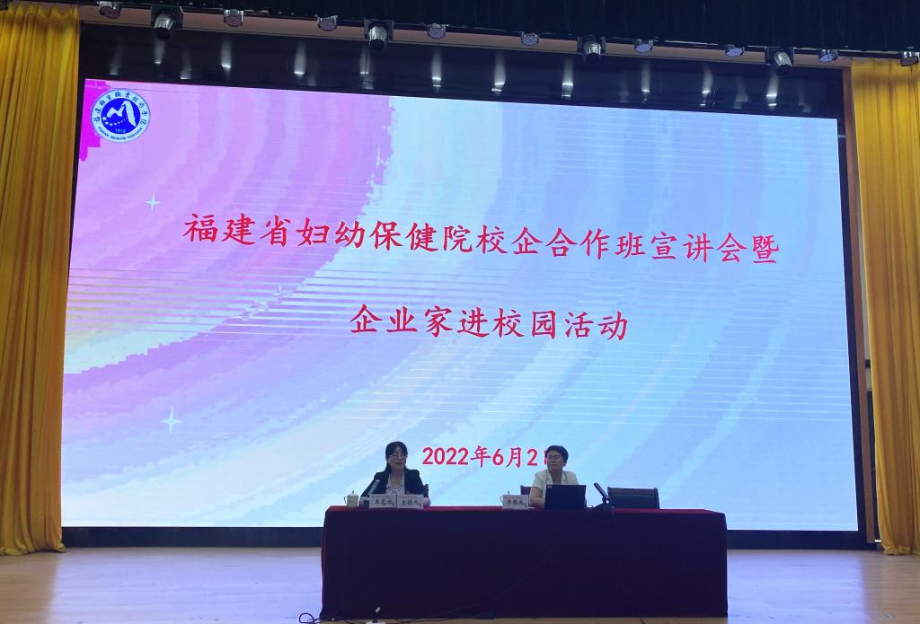 為進(jìn)一步對(duì)接行業(yè)人才市場(chǎng)需求,加強(qiáng)校企合作、深化產(chǎn)教融合,培養(yǎng)高素質(zhì)技術(shù)技能人才,6月2日,護(hù)理學(xué)院聯(lián)合福建省婦幼保健院在學(xué)術(shù)報(bào)告廳舉辦校企合作班宣講會(huì)。福建省婦幼保健院護(hù)理部副主任郭勝斌、護(hù)理部督導(dǎo)劉晨音,我校護(hù)理學(xué)院黨政領(lǐng)導(dǎo)班子、院辦公室負(fù)責(zé)人、2021級(jí)相關(guān)輔導(dǎo)員以及2021級(jí)助產(chǎn)專業(yè)全體學(xué)生參加宣講會(huì)。宣講會(huì)由護(hù)理學(xué)院副院長(zhǎng)王憲寧主持。