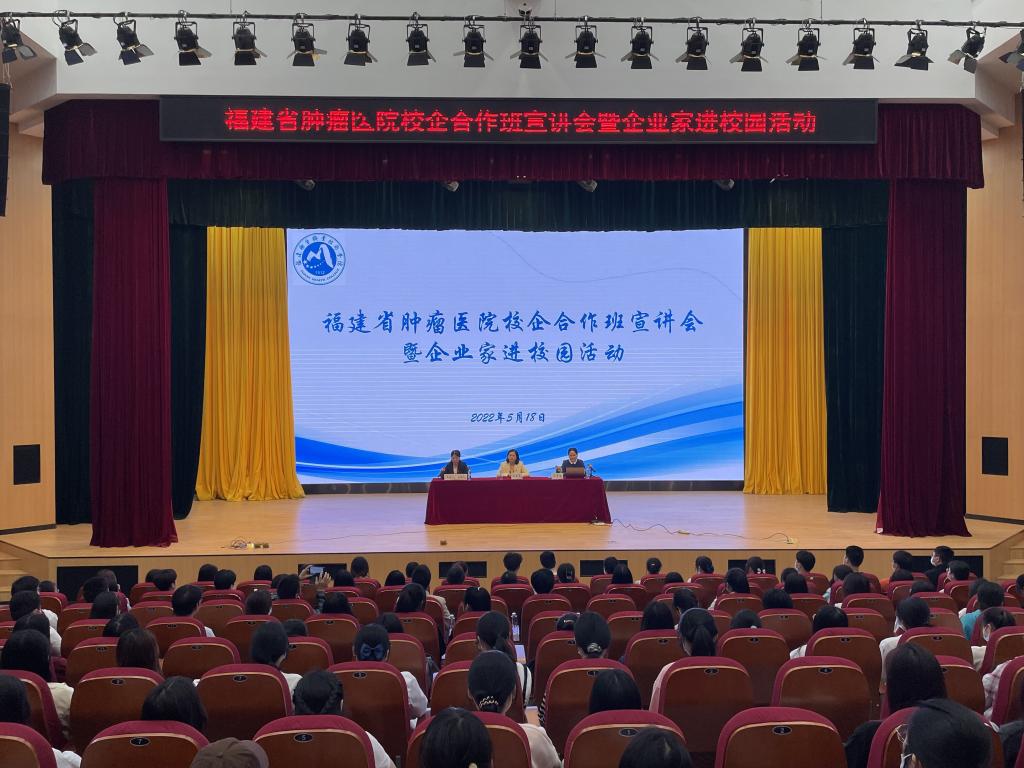 為進(jìn)一步深入貫徹落實(shí)新修訂的《中華人民共和國(guó)職業(yè)教育法》,堅(jiān)持產(chǎn)教融合、校企合作,培養(yǎng)技術(shù)技能人才。5月18日,護(hù)理學(xué)院聯(lián)合福建省腫瘤醫(yī)院在學(xué)術(shù)報(bào)告廳舉辦校院合作班宣講會(huì)。福建省腫瘤醫(yī)院主任護(hù)師鄧燕萍、副主任護(hù)師孫秀琴,護(hù)理學(xué)院黨政領(lǐng)導(dǎo)班子、院辦公室負(fù)責(zé)人、2021級(jí)學(xué)生輔導(dǎo)員以及2021級(jí)護(hù)理專業(yè)全體學(xué)生參加宣講會(huì)。宣講會(huì)由護(hù)理學(xué)院副院長(zhǎng)王憲寧主持。