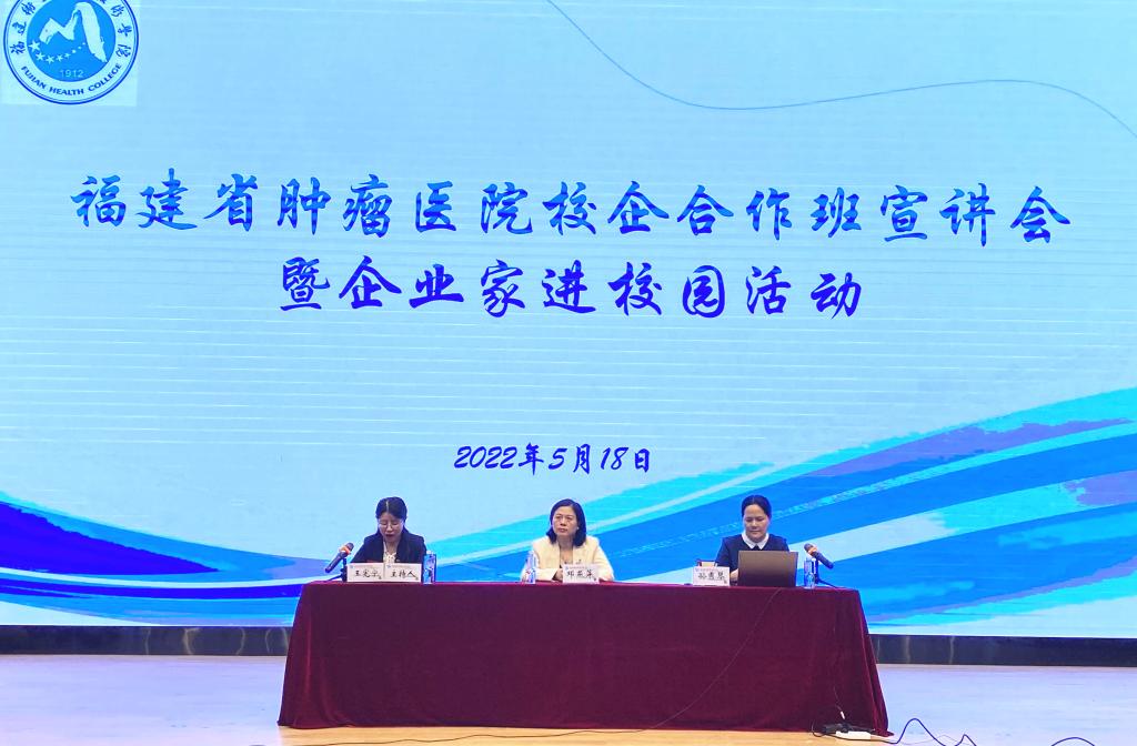 會(huì)上,鄧燕萍介紹了福建省腫瘤醫(yī)院特色和優(yōu)勢(shì)、就業(yè)前景、薪資待遇等情況;孫秀琴?gòu)男T汉献靼嘟虒W(xué)情況、師資隊(duì)伍、學(xué)生管理、業(yè)余生活等方面進(jìn)行深入講解。