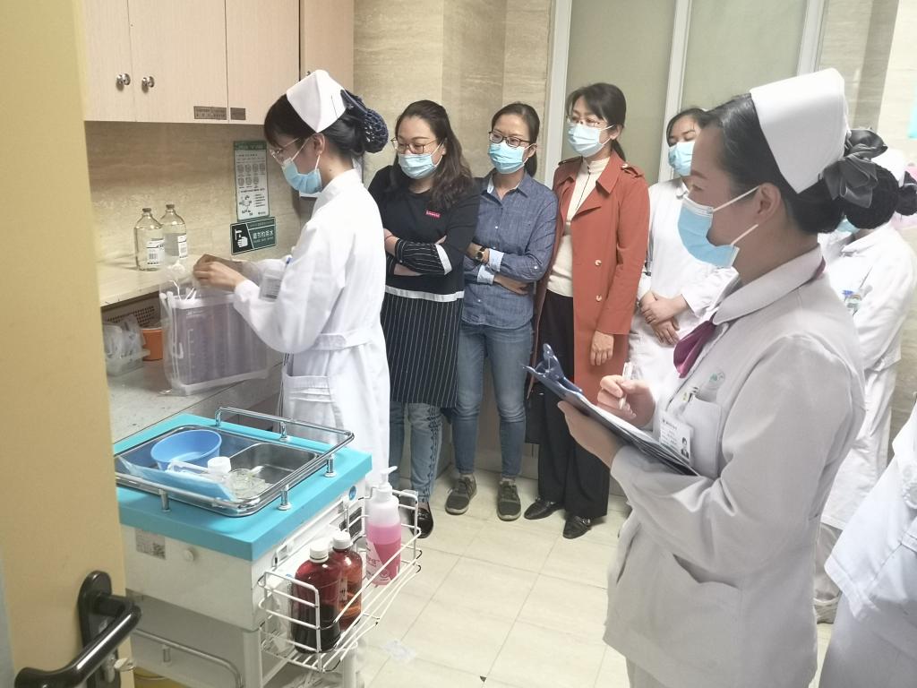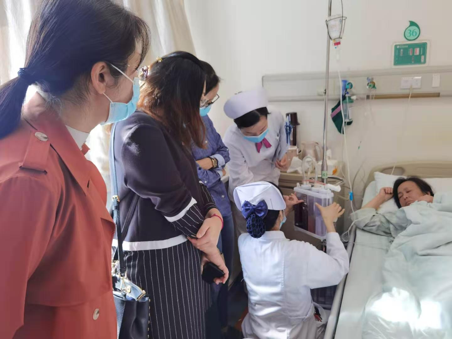 隨后,老師們來到胸外科病區(qū)參與我院實(shí)習(xí)生的出科考核??己隧?xiàng)目為“胸腔閉式引流瓶更換”,該項(xiàng)操作是胸外科實(shí)習(xí)生出科技能考核的重點(diǎn)考查內(nèi)容。學(xué)生們操作熟練、動作規(guī)范,操作過程中耐心地對患者進(jìn)行人文關(guān)懷與健康指導(dǎo),得到了總帶教涂秀華老師的好評。