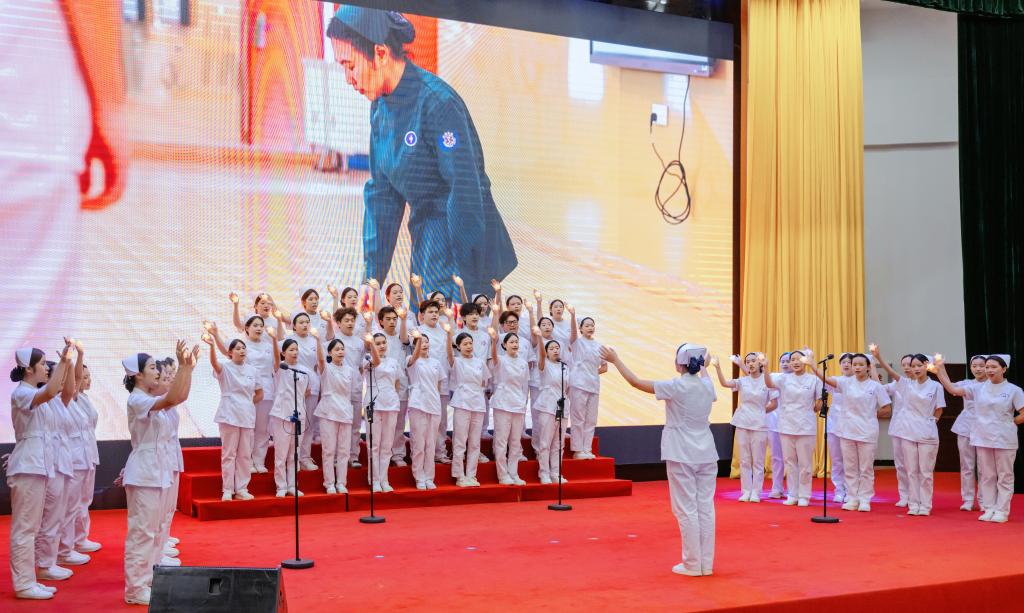 我校護理學院合唱隊以《這世界贈予我的》深情獻唱,演繹護理工作者“以生命溫暖生命”的職業(yè)情懷,為頒獎儀式畫上圓滿的句號。