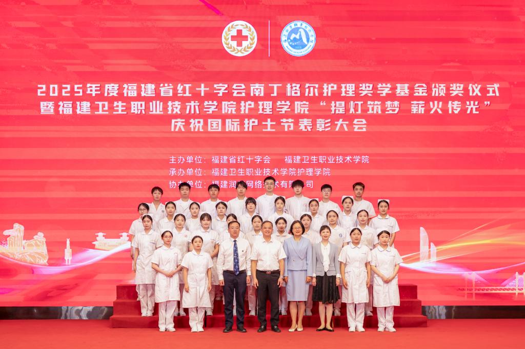 5月12日下午,2025年度福建省紅十字會南丁格爾護理獎學基金頒獎儀式暨福建衛(wèi)生職業(yè)技術(shù)學院護理學院“提燈筑夢 薪火傳光”慶祝國際護士節(jié)表彰大會在福建衛(wèi)生職業(yè)技術(shù)學院崇學廳舉行。福建省紅十字會黨組書記何明華,第47屆國際南丁格爾獎章獲得者、福建省衛(wèi)生健康委員會黨組成員、副主任李紅,福建衛(wèi)生職業(yè)技術(shù)學院黨委副書記、校長徐偉,福建省紅十字會黨組成員、專職副會長楊飛燕等出席活動并為南丁格爾護理獎學基金獲獎學生頒獎。