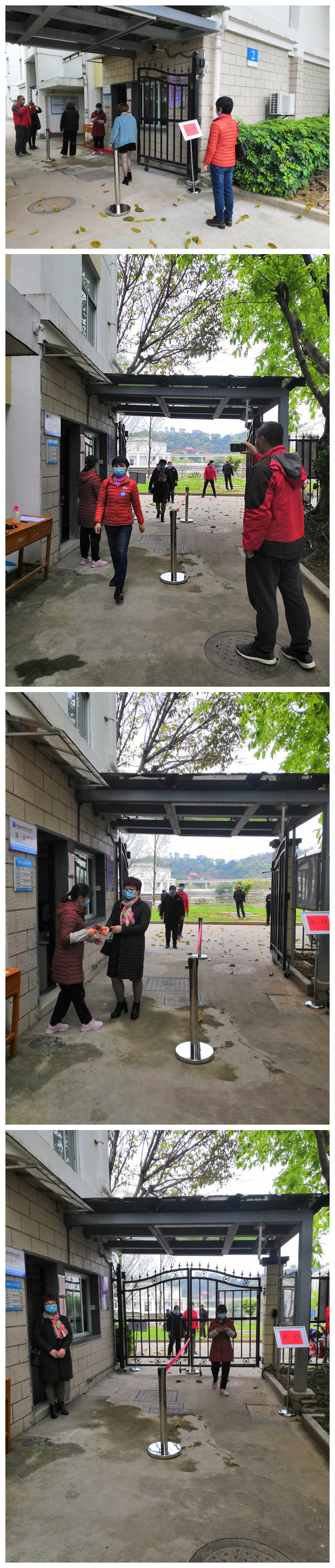 演練場(chǎng)景為學(xué)生進(jìn)入宿舍區(qū)測(cè)量體溫及體溫異常應(yīng)急處置。后勤管理處葉文偉副處長(zhǎng)對(duì)參與演練的物業(yè)宿管人員做動(dòng)員講話,強(qiáng)調(diào)宿舍區(qū)防控工作要點(diǎn)及防控演練的重要性。接著物業(yè)現(xiàn)場(chǎng)管理經(jīng)理對(duì)演練卡點(diǎn)、流程做了具體要求和安排。演練模擬學(xué)生返回宿舍前,在宿舍區(qū)入口有序排成一列縱隊(duì),并保持1米以上間距,宿管員在入口處逐個(gè)測(cè)量體溫。體溫正常的“同學(xué)”允許進(jìn)入;發(fā)現(xiàn)體溫高于37.2℃的“同學(xué)”,迅速關(guān)閉宿舍區(qū)鐵欄桿大門,對(duì)其就地隔離,并馬上報(bào)告物業(yè)現(xiàn)場(chǎng)管理經(jīng)理,由物業(yè)現(xiàn)場(chǎng)管理經(jīng)理上報(bào)學(xué)校進(jìn)行進(jìn)一步檢查。