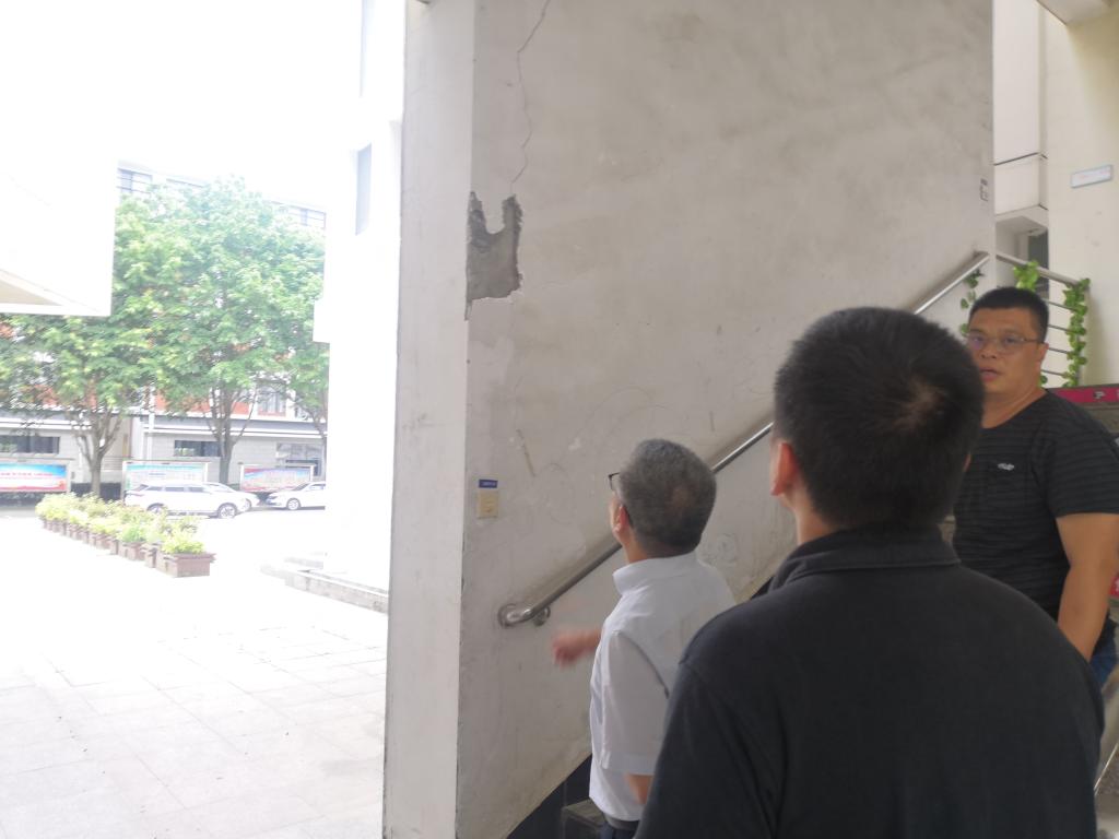 5月29日,陳貞健副院長帶領(lǐng)后勤管理處人員對各部門報告的疑似房屋結(jié)構(gòu)安全隱患進行現(xiàn)場復(fù)查。