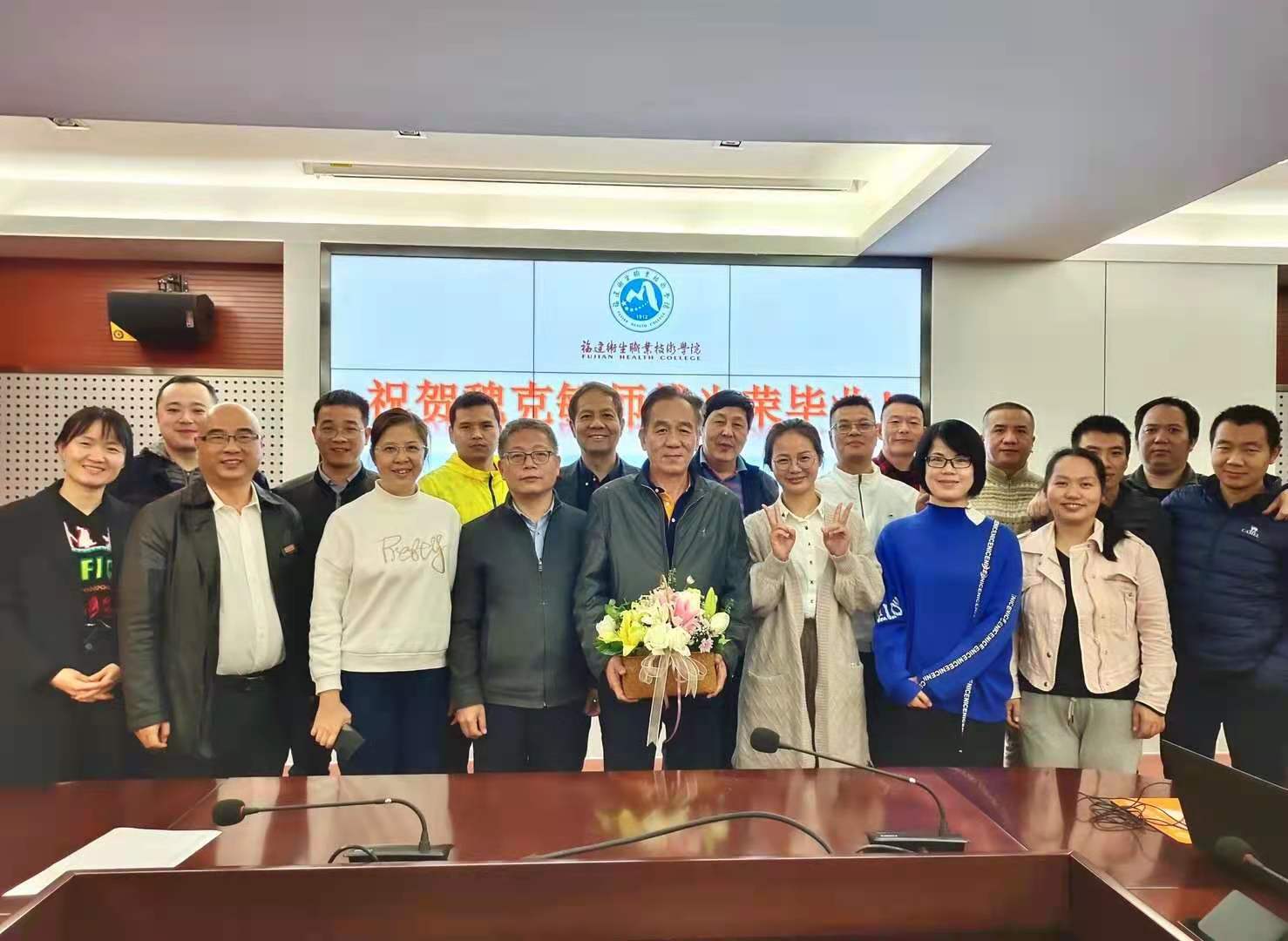 11月30日中午,后勤管理處在行政樓四樓會(huì)議室為魏克敏老師舉辦了退休歡送會(huì)。學(xué)校副校長陳貞健、工會(huì)專職副主席洪常青、醫(yī)學(xué)系黨總支副書記邱滾忠、健康管理系黨總支副書記吳燕玲及后勤管理處職工參加歡送會(huì)。