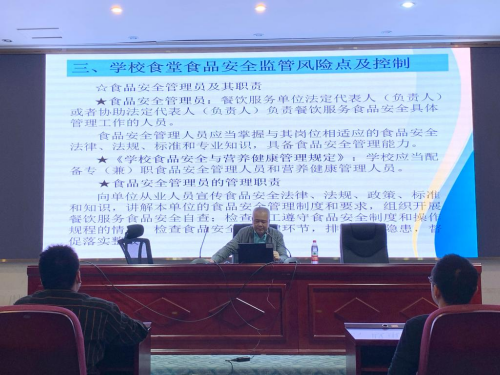 講座伊始,謝寧對(duì)《中華人民共和國(guó)食品安全法》進(jìn)行了剖析解讀,引導(dǎo)廣大師生及校園食品經(jīng)營(yíng)單位提升學(xué)法、知法、守法、用法意識(shí),切實(shí)增強(qiáng)做好食品安全工作的責(zé)任感和使命感。隨后,他結(jié)合校園食品安全實(shí)際,對(duì)學(xué)校食堂及學(xué)校食品經(jīng)營(yíng)單位各環(huán)節(jié)涉及到的食品安全問題進(jìn)行一一講解,并明晰了食堂監(jiān)管人員的工作職責(zé)及考核要求,強(qiáng)化食品安全意識(shí),防范食品安全風(fēng)險(xiǎn),統(tǒng)籌做好食品安全保障工作。最后,謝寧提醒廣大師生在增強(qiáng)自我防范意識(shí)的同時(shí),共同參與食品安全的監(jiān)管工作,樹立“食品安全,人人有責(zé)”的思想,也進(jìn)一步強(qiáng)化校園食品經(jīng)營(yíng)單位的主體責(zé)任意識(shí),筑牢食品安全防護(hù)網(wǎng),把好最后一道“入口關(guān)”。