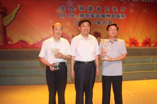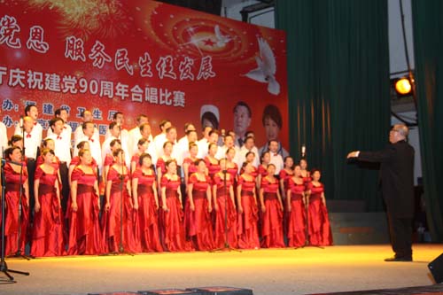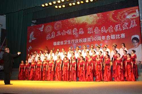 由省衛(wèi)生廳主辦的慶祝中國(guó)共產(chǎn)黨成立90周年“健康衛(wèi)士頌黨恩 服務(wù)民生促發(fā)展”合唱比賽,6月14日下午在福州總院禮堂隆重舉行,共有省屬醫(yī)療衛(wèi)生單位13個(gè)團(tuán)隊(duì)參加了比賽,我院領(lǐng)導(dǎo)和教職工60人組成的合唱團(tuán),帶著《在燦爛陽光下》、《七律·人民解放軍占領(lǐng)南京》兩首曲目、帶著飽滿的熱情和良好的精神風(fēng)貌參加了比賽,榮獲二等獎(jiǎng)。