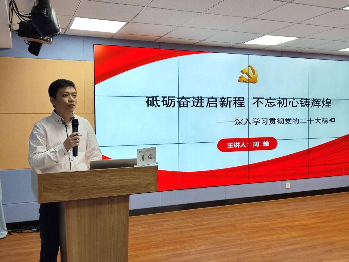為推動(dòng)黨的二十大精神在我校落地生根,切實(shí)增強(qiáng)黨員教職工思想引領(lǐng)作用,11月29日,副校長周雄深入基層,面向體育部、后勤管理處、招標(biāo)采購中心以及學(xué)生運(yùn)動(dòng)隊(duì)代表,以“砥礪奮進(jìn)啟新程 不忘初心鑄輝煌”為主題宣講黨的二十大精神。
