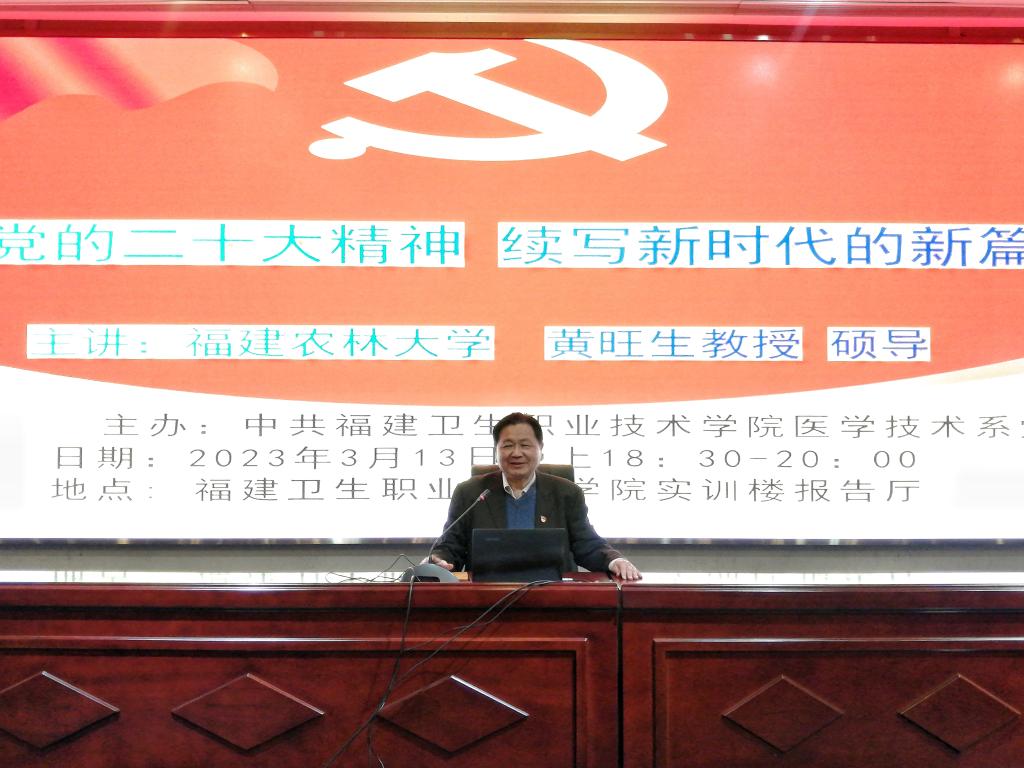 3月13日,福建農(nóng)林大學(xué)黃旺生教授來校為醫(yī)學(xué)技術(shù)系師生講授《學(xué)習(xí)黨的二十大精神 續(xù)寫新時(shí)代的新篇章》黨課。醫(yī)學(xué)技術(shù)系黨總支書記柯瓊鶯、黨員教師代表及醫(yī)學(xué)技術(shù)系第二十一期業(yè)余分黨校暨青馬工程培訓(xùn)班學(xué)員150余人共同參加學(xué)習(xí)。