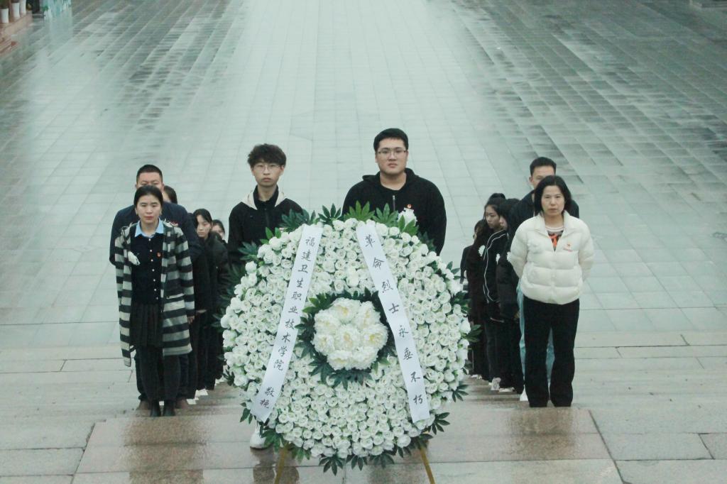 在莊嚴肅穆的烈士紀念碑前,師生們列隊肅立,深切緬懷革命先烈的豐功偉績,向革命先烈集體默哀,寄托對革命先烈的無限哀思。