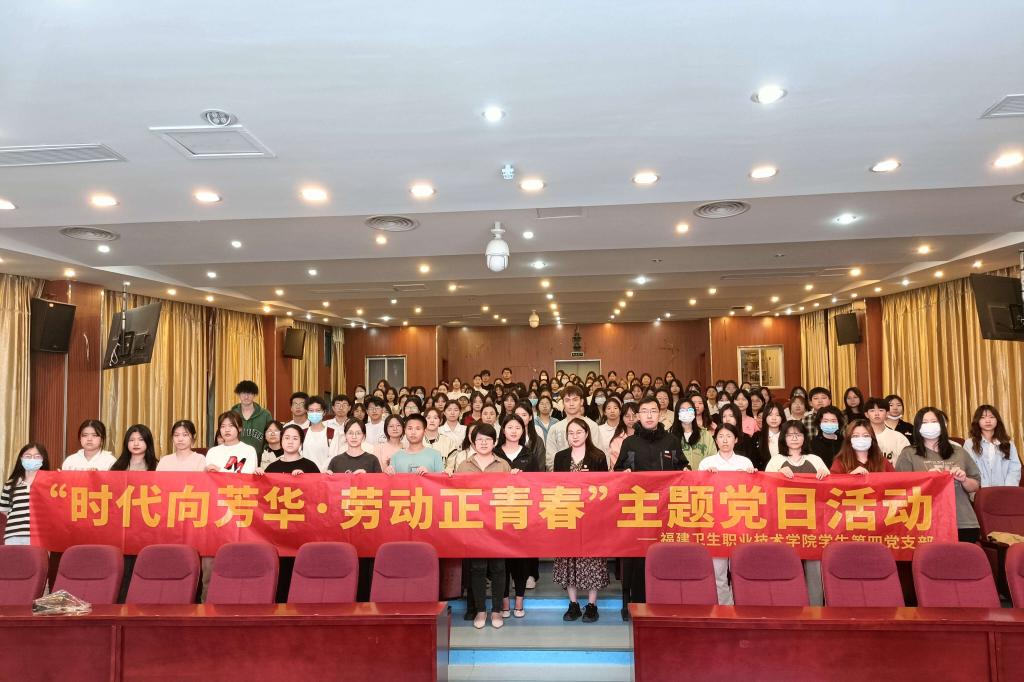 為學習貫徹黨的二十大報告提出的“在全社會弘揚勞動精神、奮斗精神、奉獻精神、創(chuàng)造精神、勤儉節(jié)約精神,培育時代新風新貌”,4月27日,護理學院學生第四黨支部在實訓樓報告廳開展“時代向芳華 勞動正青春”主題黨日活動,護理學院學生第四黨支部全體師生黨員、120名入黨積極分子參加本次活動。