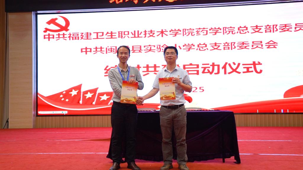 為深入開展學(xué)習(xí)貫徹習(xí)近平新時(shí)代中國特色社會(huì)主義思想主題教育,全面貫徹落實(shí)新時(shí)代黨的建設(shè)總要求,充分發(fā)揮各級(jí)校園人才優(yōu)勢和示范帶動(dòng)作用,進(jìn)一步助推校際黨建業(yè)務(wù)雙融合雙促進(jìn),2023年5月25日,我校藥學(xué)院黨總支與閩侯縣實(shí)驗(yàn)小學(xué)黨總支開展結(jié)對(duì)共建啟動(dòng)儀式,活動(dòng)在閩侯縣實(shí)驗(yàn)小學(xué)大成樓三樓舉行。我校副校長黃銘珊、閩侯縣實(shí)驗(yàn)小學(xué)黨總支書記張進(jìn)勇及班子成員、藥學(xué)院黨總支全體黨務(wù)干部出席本次活動(dòng)。