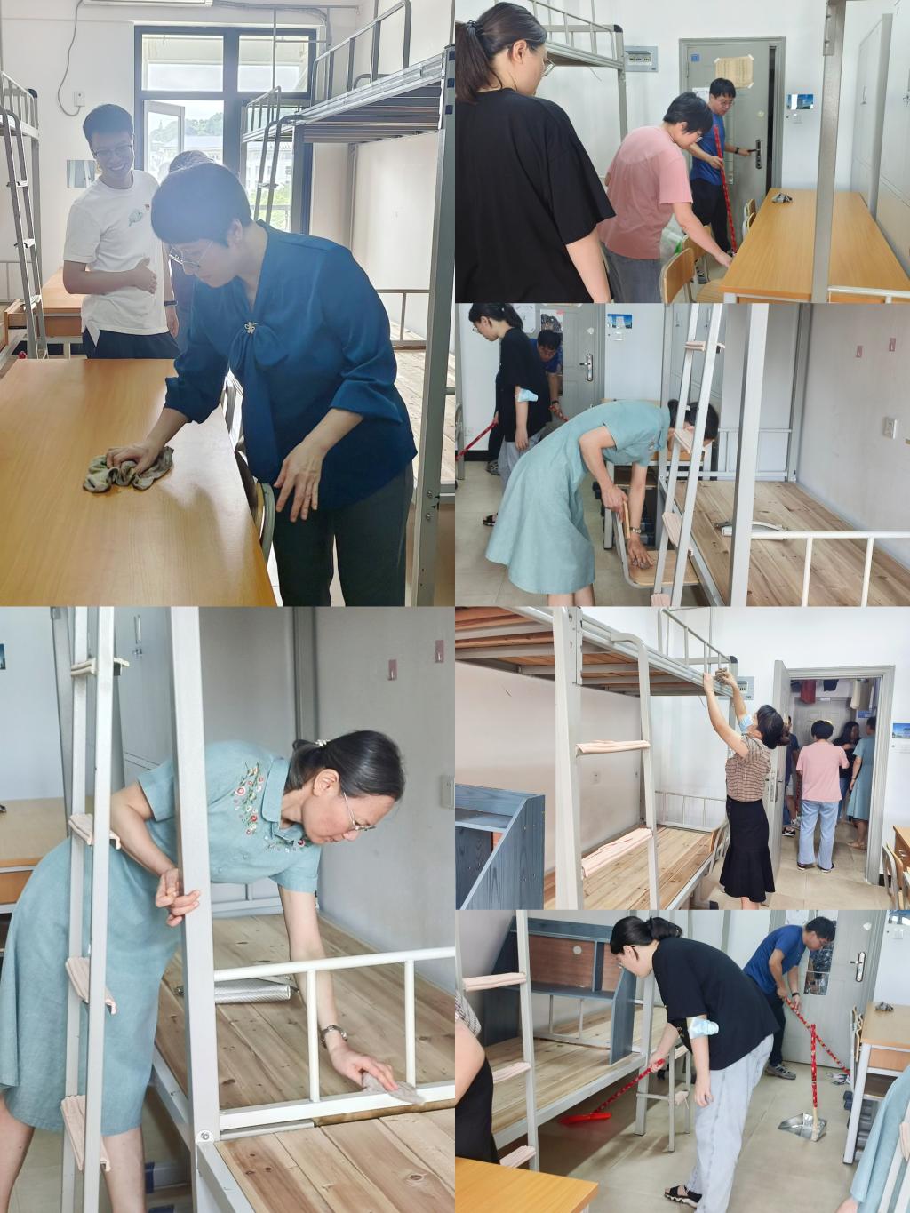 活動(dòng)中,學(xué)生黨支部黨員同志們以身作則率,自帶清潔工具,大家積極參與,相互配合,發(fā)揚(yáng)不怕臟、不怕累的優(yōu)良作風(fēng),逐一對新生宿舍地面、桌面、陽臺(tái)進(jìn)行了認(rèn)真清掃,確保不遺漏任何一個(gè)角落。在做好衛(wèi)生清潔之際,師生黨員還仔細(xì)檢查宿舍內(nèi)桌椅、門窗等硬件設(shè)施,對可能存在的安全隱患進(jìn)行排查,為新生順利入學(xué)保駕護(hù)航。在大家的齊心協(xié)力下,地面變得干凈整潔,灰塵、垃圾一掃而空,宿舍面貌煥然一新。