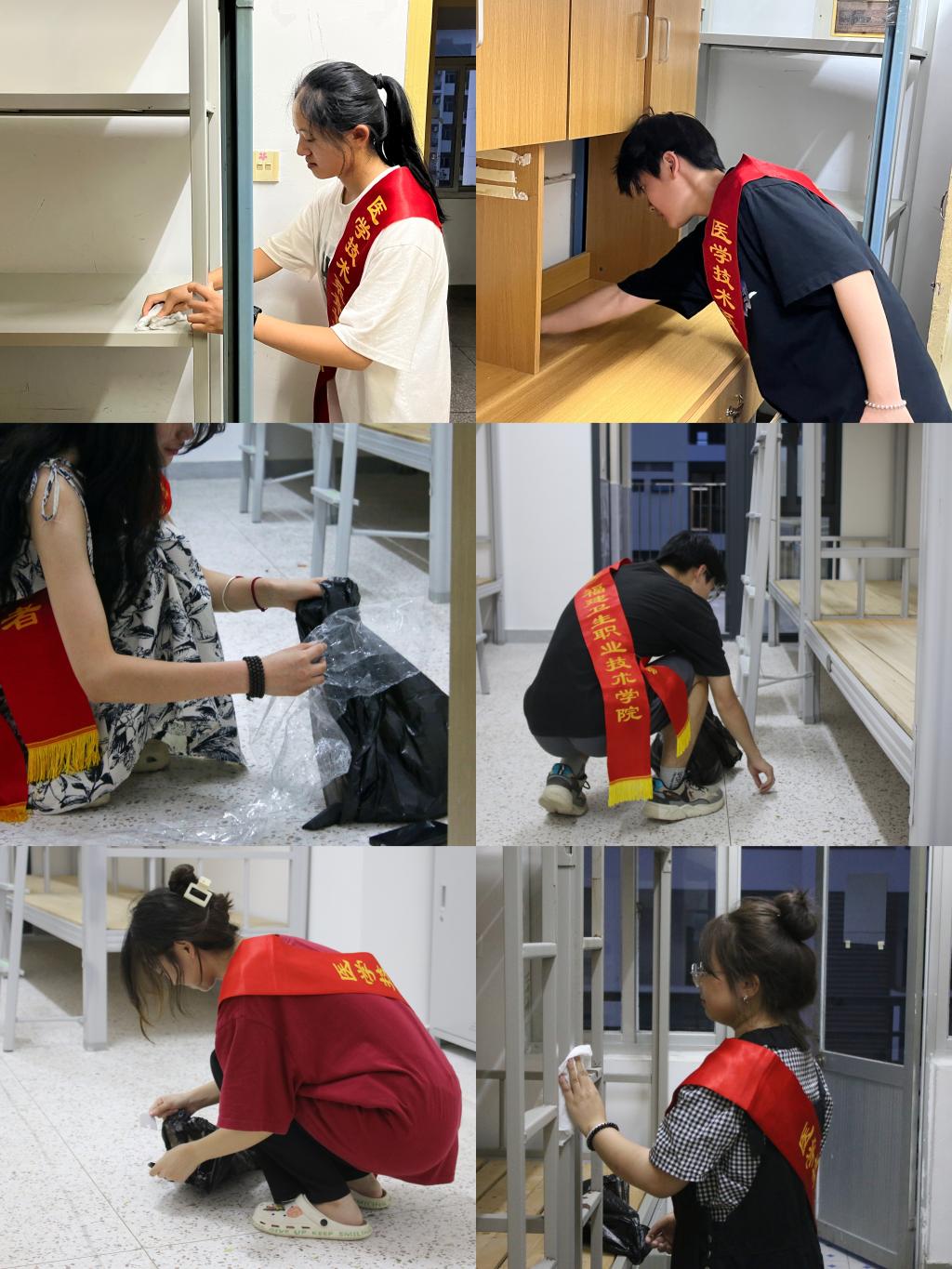 秋陽朗照,秋風(fēng)送爽。為落實(shí)學(xué)校迎新工作安排,充分發(fā)揮師生黨員的先鋒模范作用,創(chuàng)建干凈、整潔的宿舍環(huán)境,切實(shí)保障廣大同學(xué)身體健康。9月11日下午,在醫(yī)學(xué)技術(shù)系黨總支的統(tǒng)一組織下,學(xué)生第一、第二黨支部帶領(lǐng)系團(tuán)學(xué)干部以及40余名志愿者,深入新生寢室開展衛(wèi)生打掃工作,以實(shí)際行動(dòng)迎接2023級新生入學(xué)。醫(yī)學(xué)技術(shù)系黨總支書記柯瓊鶯、黨總支副書記林燕、各學(xué)生支部書記等參加活動(dòng)。