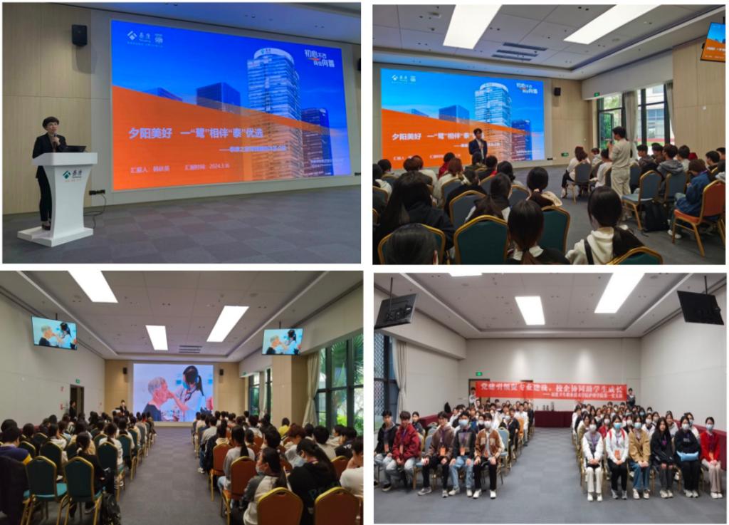 下午,泰康之家?鷺園養(yǎng)老服務(wù)及康復(fù)醫(yī)院有限公司副院長韓秋英向大家詳細(xì)介紹公司的成立背景、老年人在園區(qū)的日常生活感受、泰康用人需求及崗位設(shè)置。隨后,一畢業(yè)就在泰康之家?鷺園就業(yè)的老年保健與管理專業(yè)首屆畢業(yè)生蔡俊渠向大家分享了他的從業(yè)感受,鼓勵(lì)學(xué)弟學(xué)妹們認(rèn)真做好學(xué)業(yè)和未來職業(yè)規(guī)劃,一起攜手為養(yǎng)老事業(yè)貢獻(xiàn)青春力量。