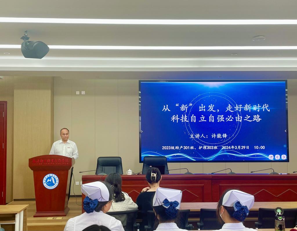 許能鋒遵循中華科技文明的發(fā)展脈絡(luò)展開(kāi)講述,從先人在農(nóng)、醫(yī)、天、算等方面締造出聞名于世的科技成果,到屢次失之交臂的科技革命深刻改變了世界發(fā)展格局,再到新中國(guó)科技自立自強(qiáng)之路實(shí)現(xiàn)了獨(dú)立自主的蝶變,為師生們?yōu)閹?lái)了一堂邏輯嚴(yán)謹(jǐn)、理論深刻、視野開(kāi)闊的形勢(shì)政策課,深刻闡述了“科技立則民族立,科技強(qiáng)則國(guó)家強(qiáng)”的歷史意蘊(yùn)。他寄語(yǔ)師生,應(yīng)當(dāng)鑒古通今,觀照未來(lái),篤行致遠(yuǎn),傳承我校優(yōu)良傳統(tǒng),活化利用現(xiàn)有資源,以科技創(chuàng)新助力健康中國(guó)建設(shè)。