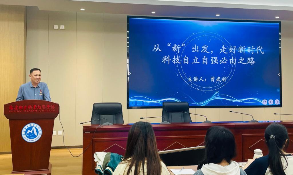 曾武祈以“從新出發(fā),走好新時(shí)代科技自立自強(qiáng)必由之路”為題,結(jié)合習(xí)近平總書(shū)記關(guān)于新質(zhì)生產(chǎn)力的重要論述,梳理了當(dāng)今世界科技革命的全新特點(diǎn)、黨和國(guó)家面臨的機(jī)遇挑戰(zhàn)及突圍路徑,介紹了我國(guó)在載人航天、人工智能、醫(yī)療器械等前沿領(lǐng)域不斷涌現(xiàn)的創(chuàng)新成果。他指出,科技創(chuàng)新的前沿永無(wú)止境,科技創(chuàng)新的前景鼓舞人心。今天的中國(guó),正向“新”而行、向“新”而進(jìn)。我校師生應(yīng)樹(shù)立開(kāi)闊的國(guó)際視野,堅(jiān)定信心、砥礪奮進(jìn),時(shí)不我待、只爭(zhēng)朝夕,勇當(dāng)科技創(chuàng)新發(fā)展的生力軍,以新質(zhì)生產(chǎn)力為現(xiàn)代醫(yī)學(xué)創(chuàng)造更多可能。