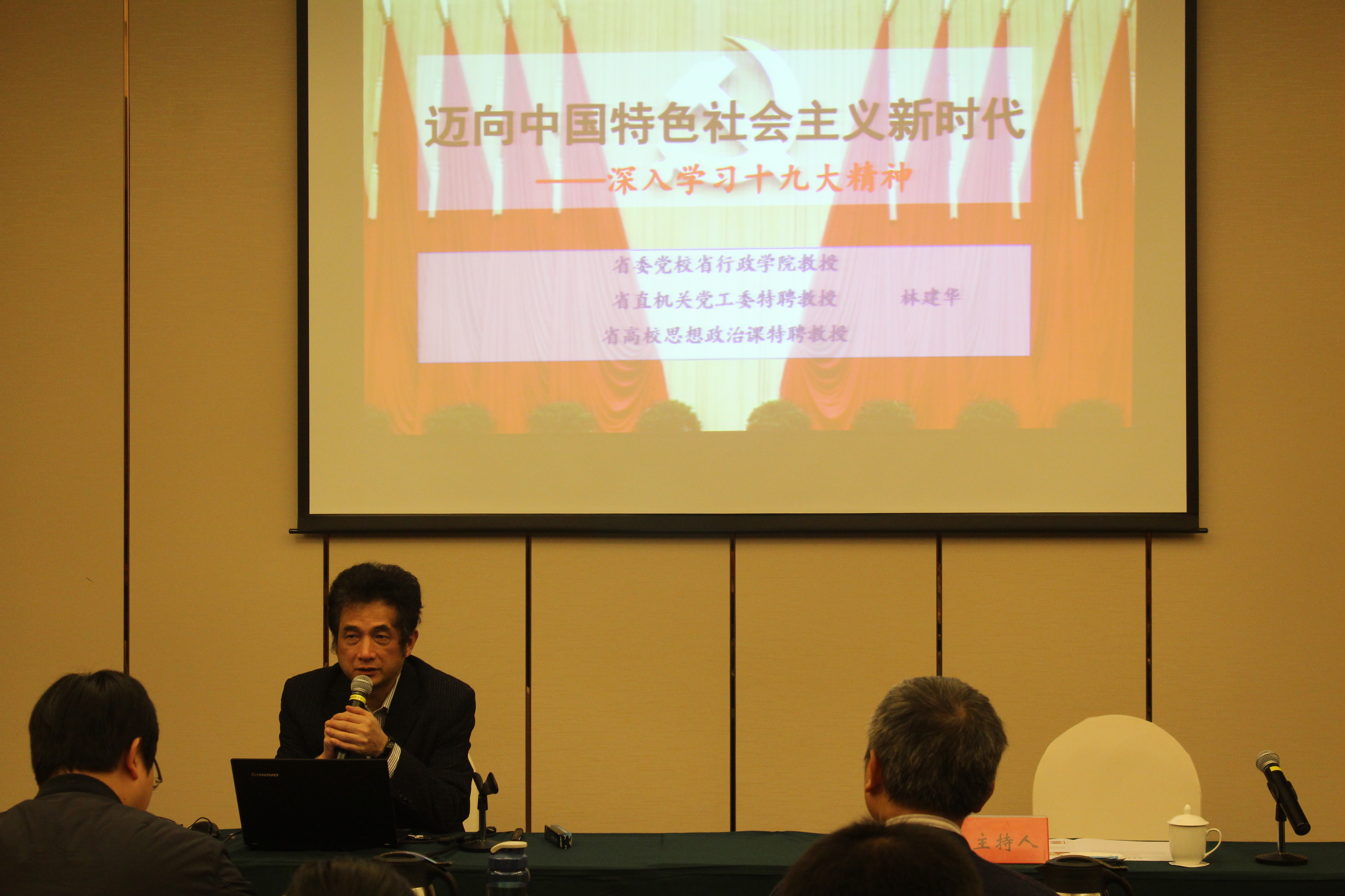10日上午,省委黨校省行政學(xué)院教授、省直機(jī)關(guān)黨工委特聘教授、省高校思想政治課特聘教授林建華應(yīng)邀為學(xué)員講授了一堂題為《邁向中國(guó)特色社會(huì)主義新時(shí)代——深入學(xué)習(xí)貫徹黨的十九大精神》的精彩講座,既有高屋建瓴的理論研究,也有貼近生活的實(shí)際案例。學(xué)員們聚精會(huì)神,邊學(xué)邊思,收獲了豐富的理論知識(shí)和極大的思想啟發(fā)。