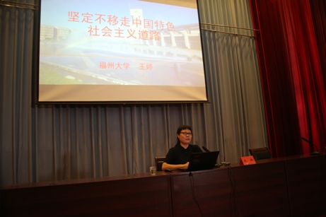 會上,來自福州大學(xué)經(jīng)濟(jì)與管理學(xué)院的王婷教授為全體黨員作了題為《堅定不移走中國特色社會主義道路》的“兩學(xué)一做”專題講座。王婷教授從中國特色社會主義道路、理論體系和制度的豐富內(nèi)涵、辯證關(guān)系方面,緊扣建設(shè)中國特色社會主義總依據(jù)、總布局、總?cè)蝿?wù),闡述了奪取中國特色社會主義新勝利的八個“堅持”內(nèi)容,加深了院全體黨員對中國特色社會主義的理解,對學(xué)院深入開展“兩學(xué)一做”學(xué)習(xí)教育具有一定的指導(dǎo)作用。