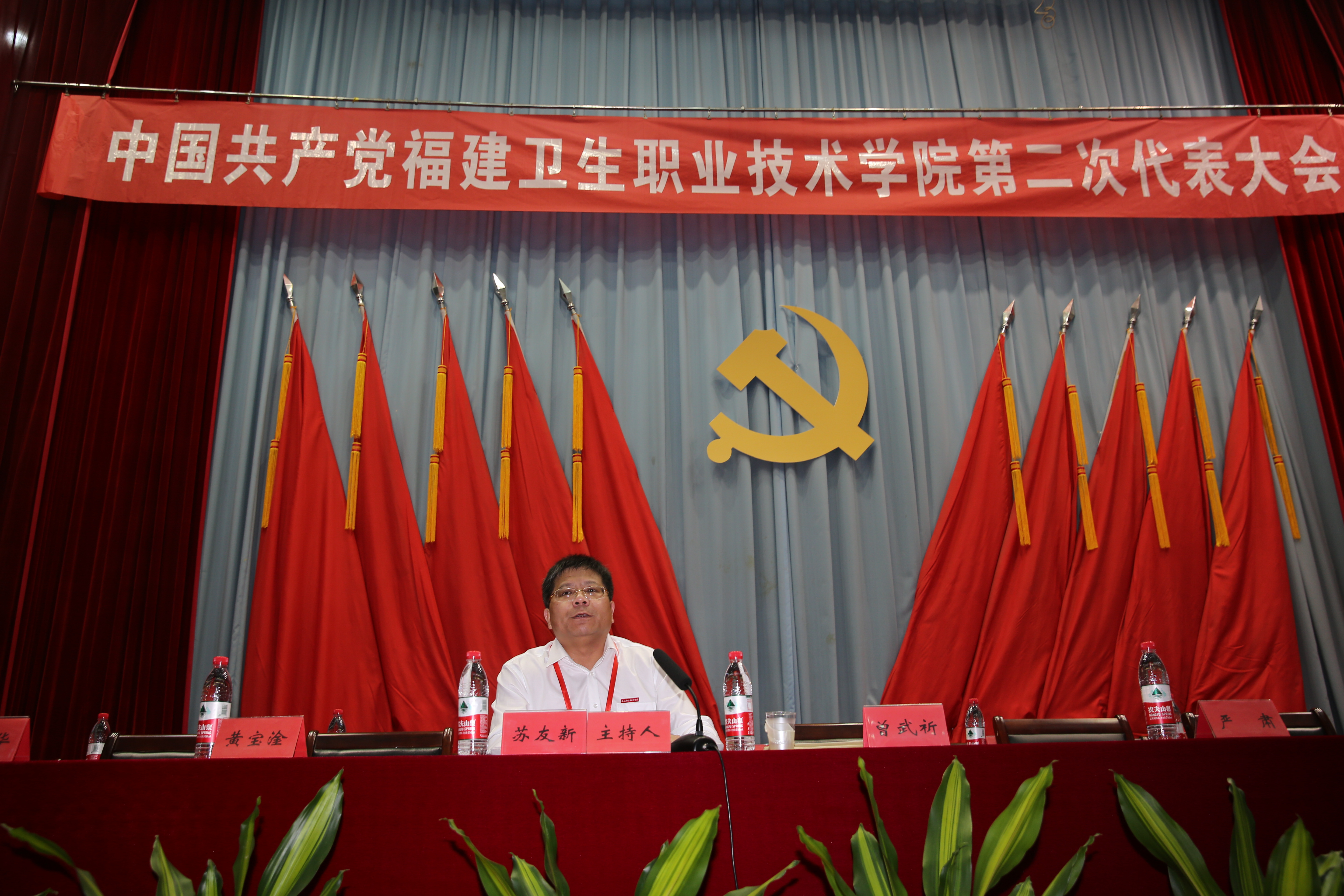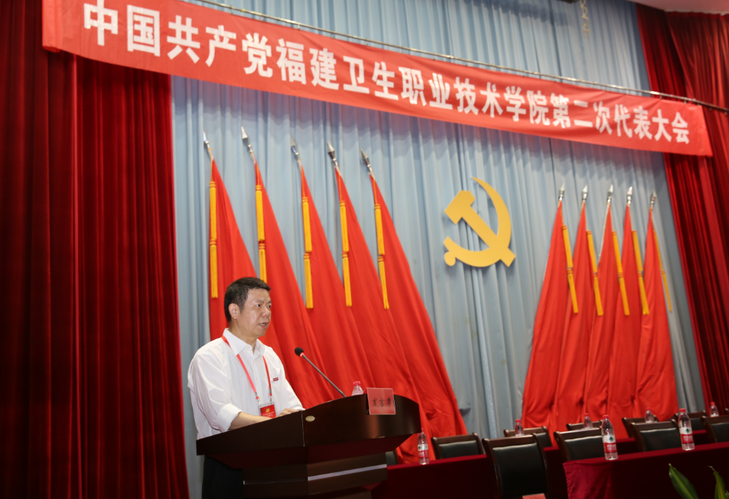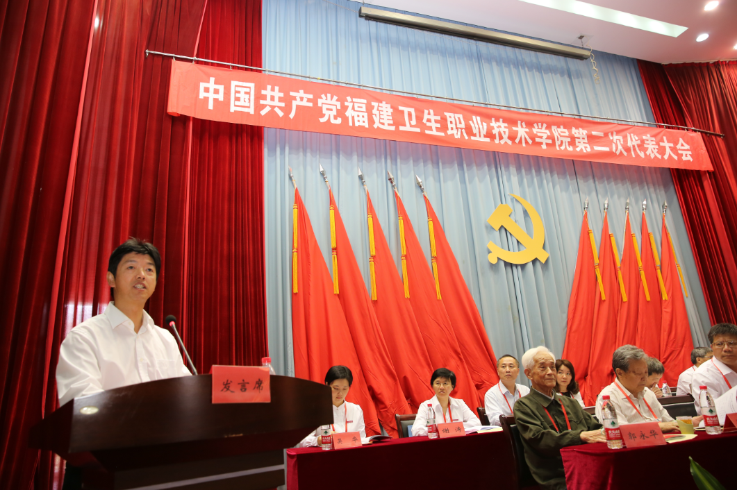 8時(shí)40分,在莊嚴(yán)的《國(guó)歌》聲中,院長(zhǎng)、黨委副書記蘇友新同志宣布中國(guó)共產(chǎn)黨福建衛(wèi)生職業(yè)技術(shù)學(xué)院第二次代表大會(huì)開幕。省委教育工委組織處處長(zhǎng)詹松青同志在會(huì)上發(fā)表講話,他代表中共福建省委教育工委對(duì)大會(huì)的召開表示熱烈的祝賀,并對(duì)學(xué)院今后五年的發(fā)展思路提出要求。詹處長(zhǎng)指出,自2016年學(xué)院黨組織關(guān)系正式劃轉(zhuǎn)到省委教育工委后,學(xué)院黨委按照省委教育工委、省教育廳黨組的決策部署,不斷加強(qiáng)黨對(duì)學(xué)院的領(lǐng)導(dǎo),扎實(shí)推進(jìn)基層黨建規(guī)范化制度化建設(shè),為實(shí)現(xiàn)省內(nèi)領(lǐng)先、國(guó)內(nèi)一流的高職院校目標(biāo)奠定了堅(jiān)持的基礎(chǔ),為我省經(jīng)濟(jì)社會(huì)和教育、醫(yī)療衛(wèi)生事業(yè)發(fā)展作出了積極貢獻(xiàn)。福建衛(wèi)生職業(yè)技術(shù)學(xué)院第二次黨員代表大會(huì)將確定今后一個(gè)時(shí)期學(xué)院工作的指導(dǎo)思想、奮斗目標(biāo)和主要任務(wù),對(duì)學(xué)院今后的改革發(fā)展具有承前啟后、繼往開來的重要意義。希望學(xué)院黨委以這次黨代會(huì)的召開為新的起點(diǎn),緊緊圍繞“四個(gè)全面”戰(zhàn)略布局,以立德樹人為根本任務(wù),堅(jiān)定社會(huì)主義辦學(xué)方向,推進(jìn)依法治校,促進(jìn)內(nèi)涵發(fā)展,不斷開創(chuàng)學(xué)院各項(xiàng)事業(yè)新局面。