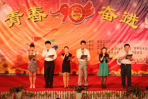 在魏立娜副院長的致辭后,晚會在激昂的樂隊(duì)演奏中拉開帷幕,兩個半小時的晚會節(jié)目豐富多彩,有感人肺腑的配樂朗誦、激蕩人心的街舞、趣味橫生的小品、青春洋溢的歌曲串燒。院團(tuán)委選送的朗誦《我的青春 我的團(tuán)》通過回顧建團(tuán)90年來的精彩片段歌頌我們的青春、我們的團(tuán);福建衛(wèi)生科普志愿者藝術(shù)團(tuán)選送的小組唱,青春洋溢的歌聲感染了整個會場;跳繩社選送的《繩彩飛揚(yáng)》,以精巧的技藝展示了花樣跳繩運(yùn)動的魅力;街舞《Help》以新奇的手法將醫(yī)務(wù)人員的職業(yè)融入了舞蹈中,給人以耳目一新的感覺;具有濃郁民族風(fēng)的《雨竹林》和中華武術(shù)相融合,展現(xiàn)了博大精深的中華文化,將晚會推向了高潮。最后,歷屆十佳歌手的歌曲聯(lián)《We Are The World》、《相親相愛》更是唱出了對我們學(xué)院美好的期望和祝愿。