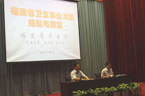 報告會上,陳文加副廳長回顧了中華人民共和國成立以來福建衛(wèi)生事業(yè)的發(fā)展?fàn)顩r,特別是近年來我省衛(wèi)生事業(yè)取得的新成就,新農(nóng)合制度不斷完善和發(fā)展,基本藥物制度全面實施,基層醫(yī)療衛(wèi)生服務(wù)體系進一步健全,公共衛(wèi)生服務(wù)能力持續(xù)增強,公立醫(yī)院改革穩(wěn)步推進。陳文加副廳長在分析了我省衛(wèi)生事業(yè)面臨的形勢和挑戰(zhàn)后,展望了我省衛(wèi)生事業(yè)發(fā)展前景,著重介紹了我省衛(wèi)生工作“十二五”發(fā)展專項規(guī)劃。