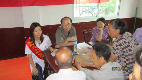6月27日,實(shí)踐團(tuán)隊(duì)一行14人(其中學(xué)院老師6人,附屬醫(yī)院醫(yī)生1人,學(xué)生7人)在魏立娜副院長的帶領(lǐng)下,經(jīng)過5個(gè)小時(shí)的行程,順利到達(dá)川石鄉(xiāng)后,即在川石鄉(xiāng)川石村村部設(shè)置義診點(diǎn),開始了本次的社會實(shí)踐。來自我院附屬省級機(jī)關(guān)醫(yī)院的專家首先為當(dāng)?shù)氐睦习傩兆隽艘惶蒙钊霚\出的健康教育講座,而后又開展了體檢義診贈藥和醫(yī)保宣傳、獻(xiàn)血控?zé)熜麄鞯然顒?,前來咨詢的群眾絡(luò)繹不絕,現(xiàn)場氣氛熱烈。次日早晨,實(shí)踐團(tuán)隊(duì)在川石鄉(xiāng)相關(guān)領(lǐng)導(dǎo)的陪同下,深入川石鄉(xiāng)更加偏僻的邊溪村,考察基層的衛(wèi)生資源狀況并進(jìn)行義診體檢贈送藥品活動。